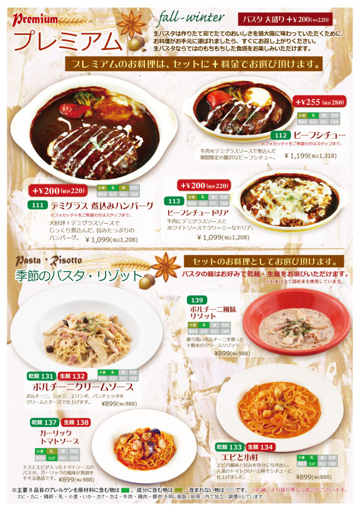 10月1日より、ナポリの食卓全店、およびパスタアルデンティーノで秋冬メニューが始まります。