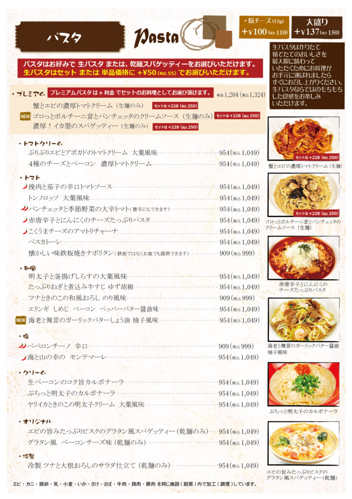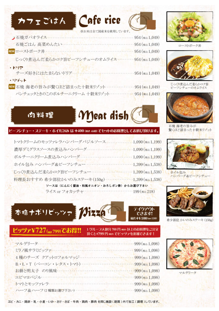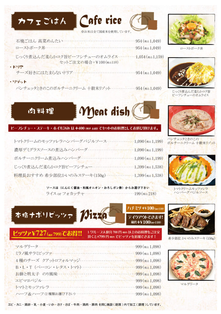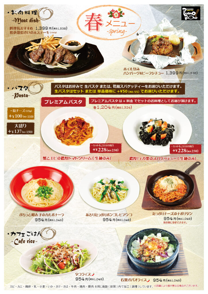 ボーノボーノダイニングカフェ メニュー