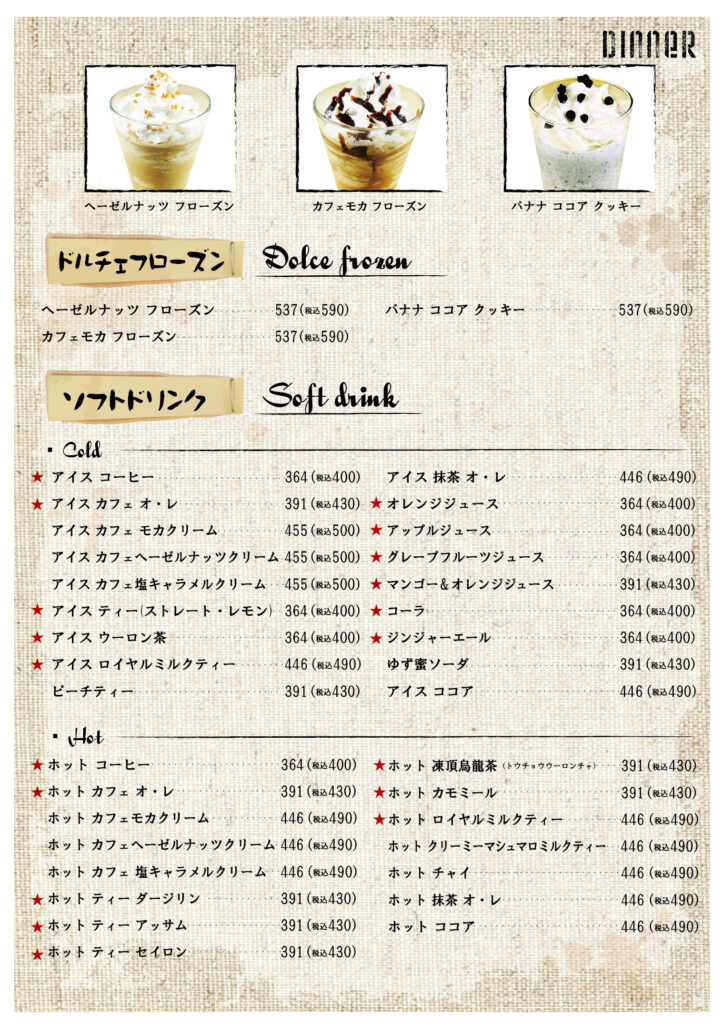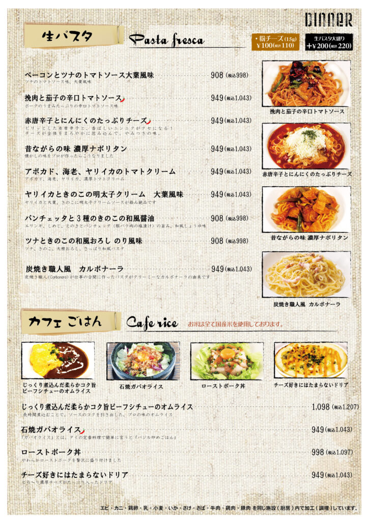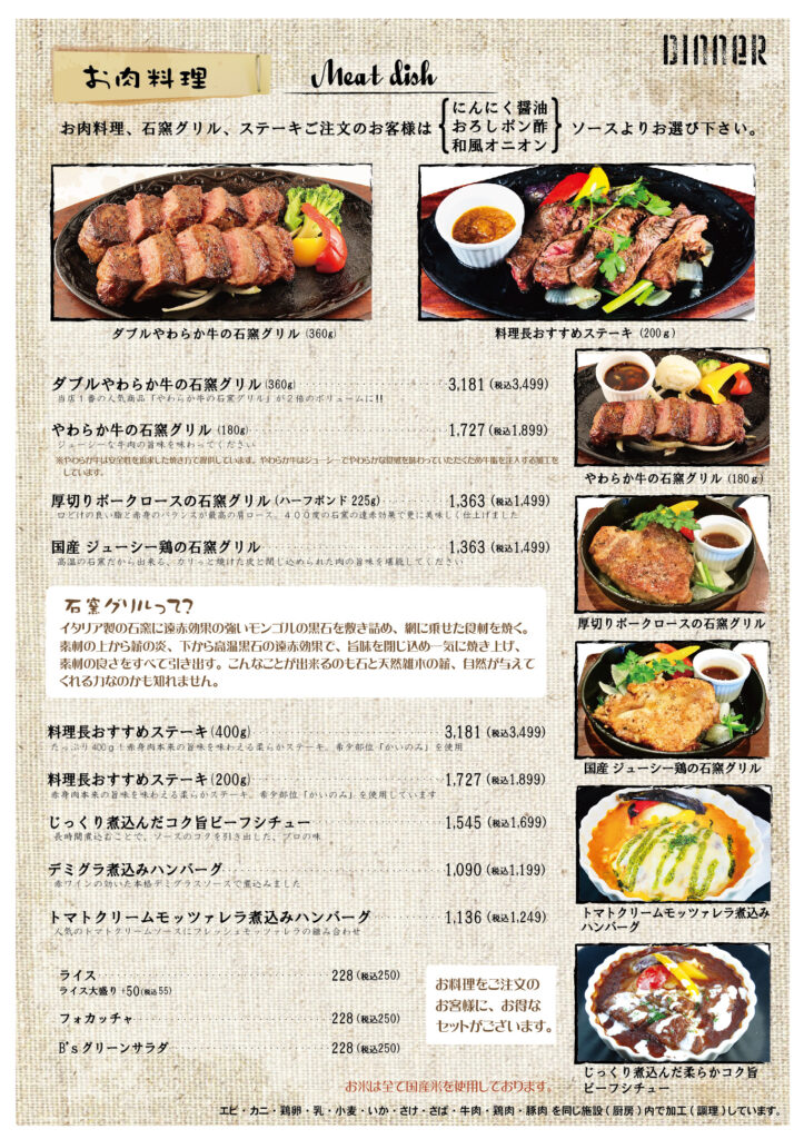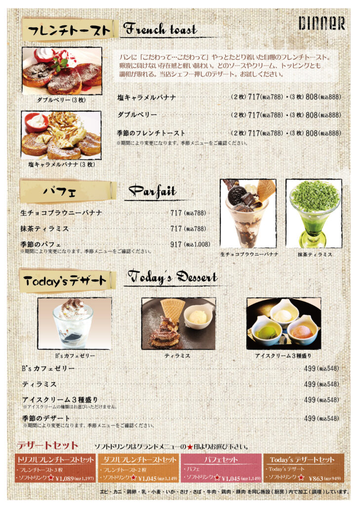 ボストンズカフェ メニュー